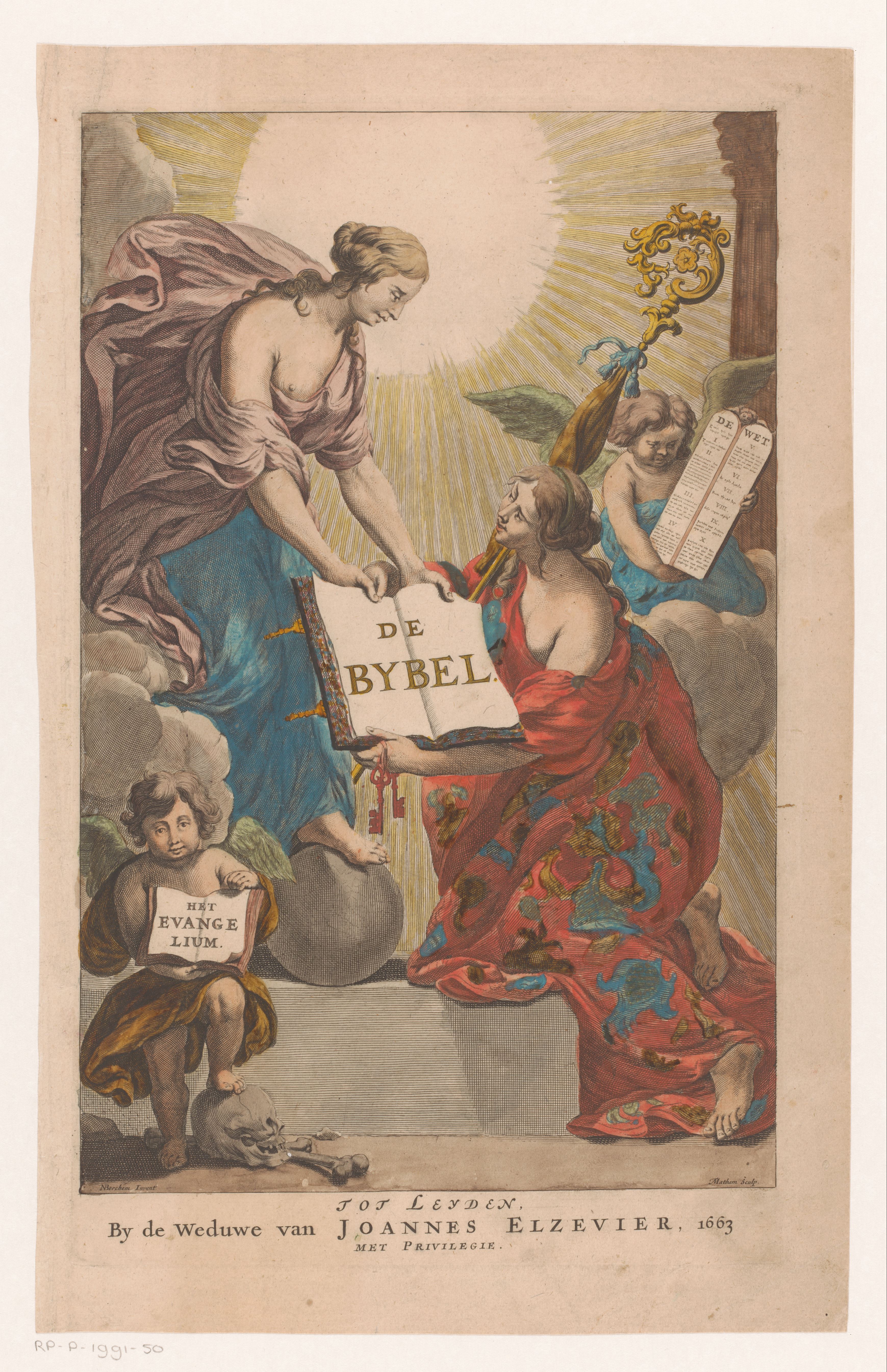 Title page for a Bible, by Theodor Matham and Nicolaes Pietersz. Berchem (1663). Collection Rijksmuseum Amsterdam, RP-P-1991-50.