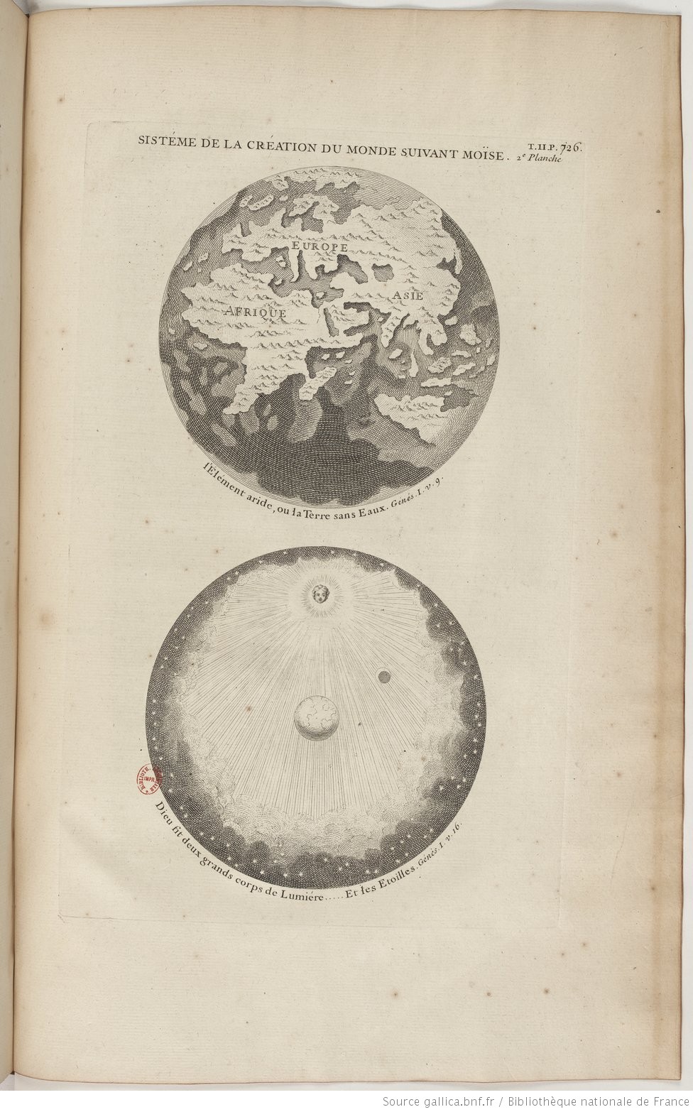 Two plates depicting the earth. From Augustin Calmet, Dictionnaire Historique, Critique, Chronologique, Geographique et Lietral de la Bible vol ii e-m (Paris, 1730). Source gallica.bnf.fr / BnF, A-1458 (2,e-m).