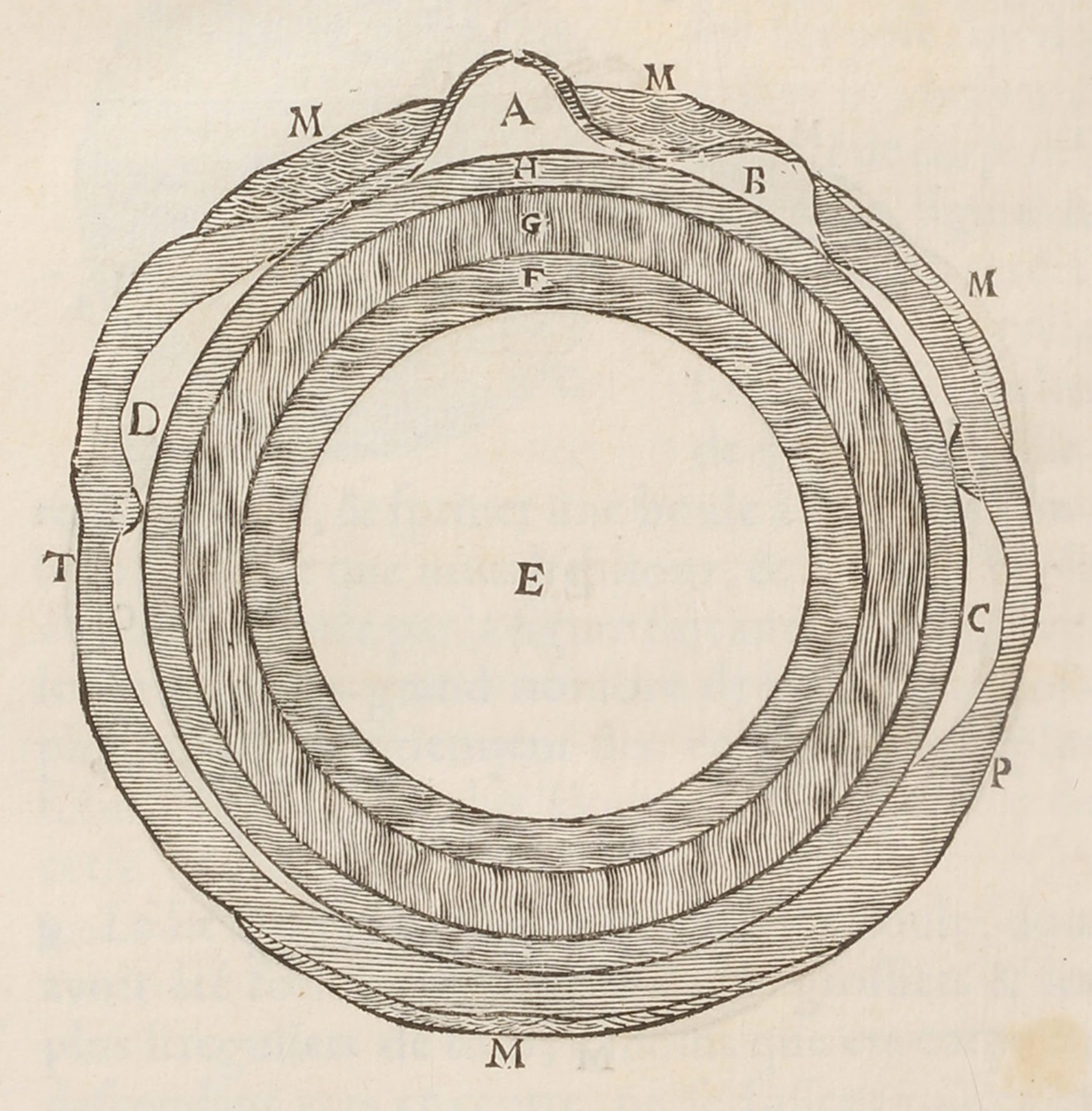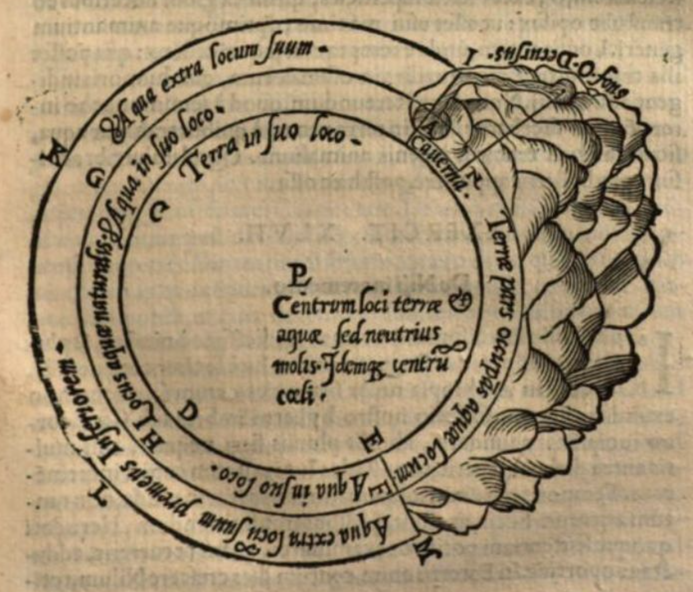 Section of the earth from Julius Caesar Scaliger’s Exotericarum Exercitationum Liber XV. De Subtilitate, ad Hieronymum Cardanum (Paris, 1557). Google Books.