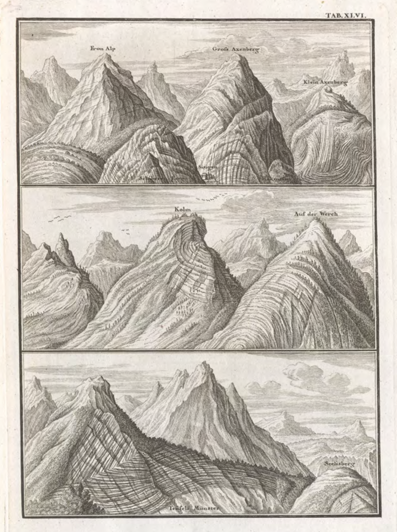 Sections depicting mountains, from Johann Jakob Scheuchzer’s Physica Sacra (Augsburg and Ulm, 1731-5). Courtesy of The Linda Hall Library of Science, Engineering & Technology, QH41.S339 1731.