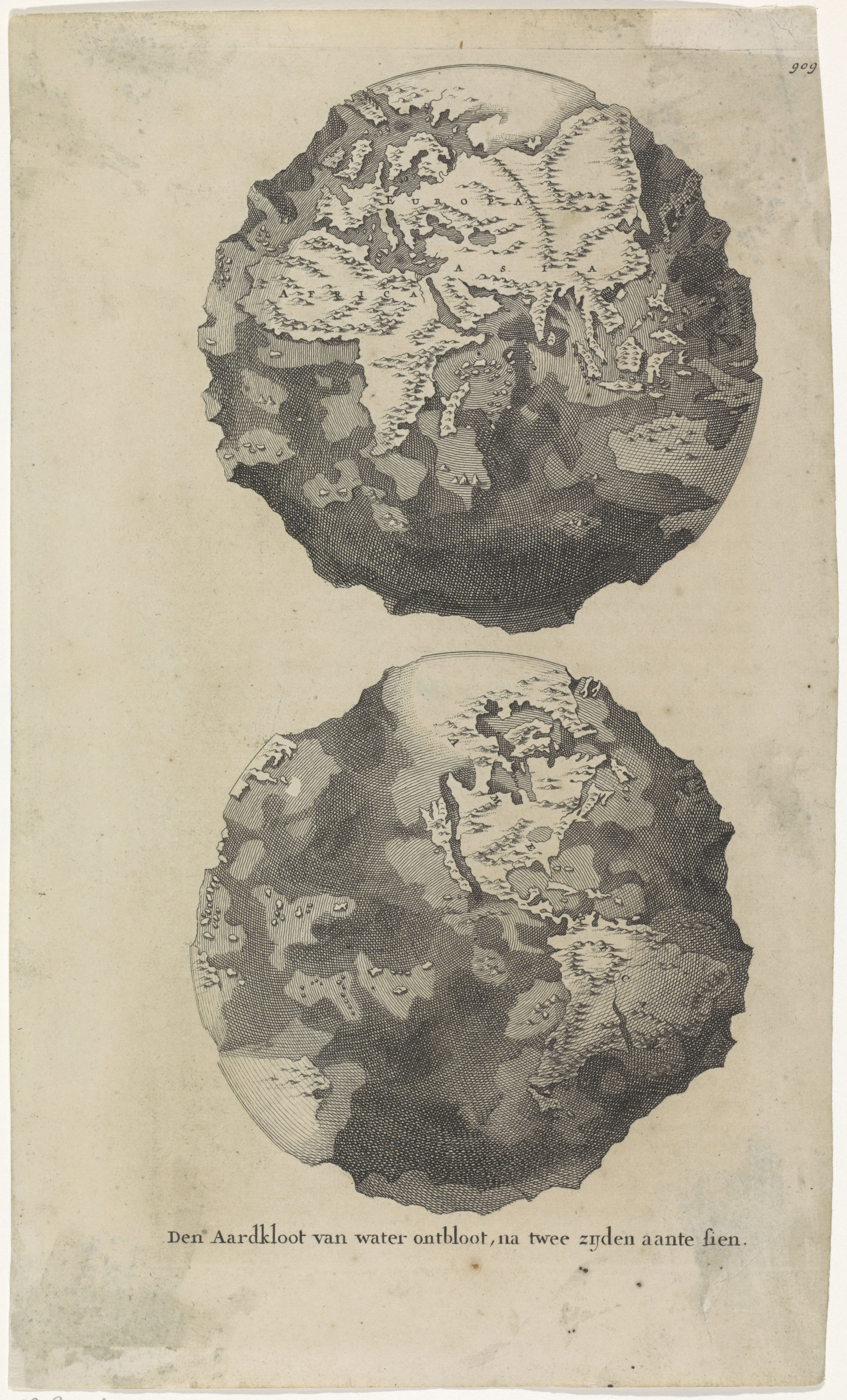 ‘Den Aardkloot van water ontbloot, na twee zyden aante sien’. From Willem Goeree, Voor-Bereidselen tot de Bybelse Wysheid (Amsterdam, 1690). Rijksmuseum Amsterdam, RP-P-1916-404.