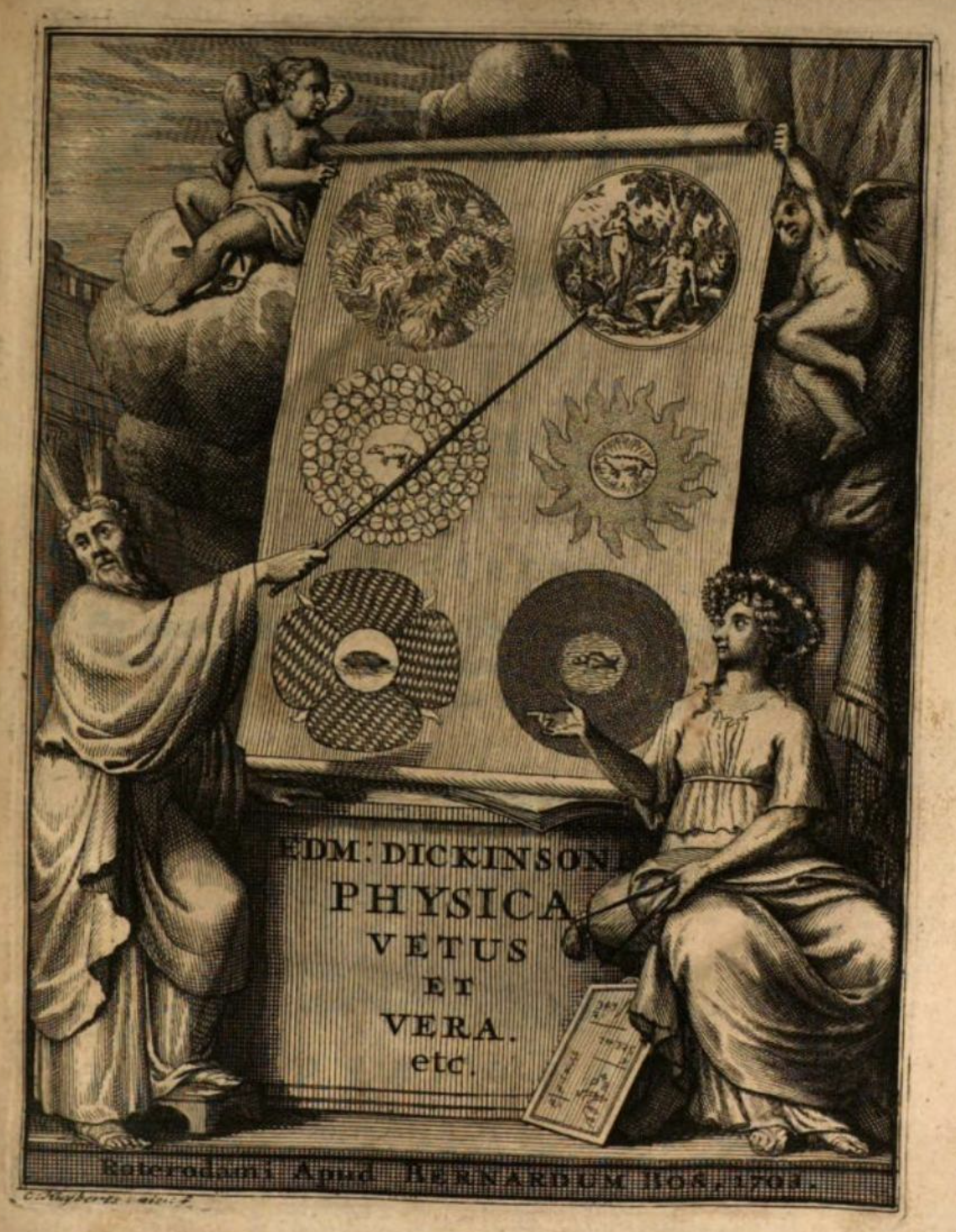 Titlepage of Edmund Dickinson’s Physica Vetus et Vera: sive Tractatus de Naturali Veritate Hexemeri Mosaici (Rotterdam, 1703). Google Books.