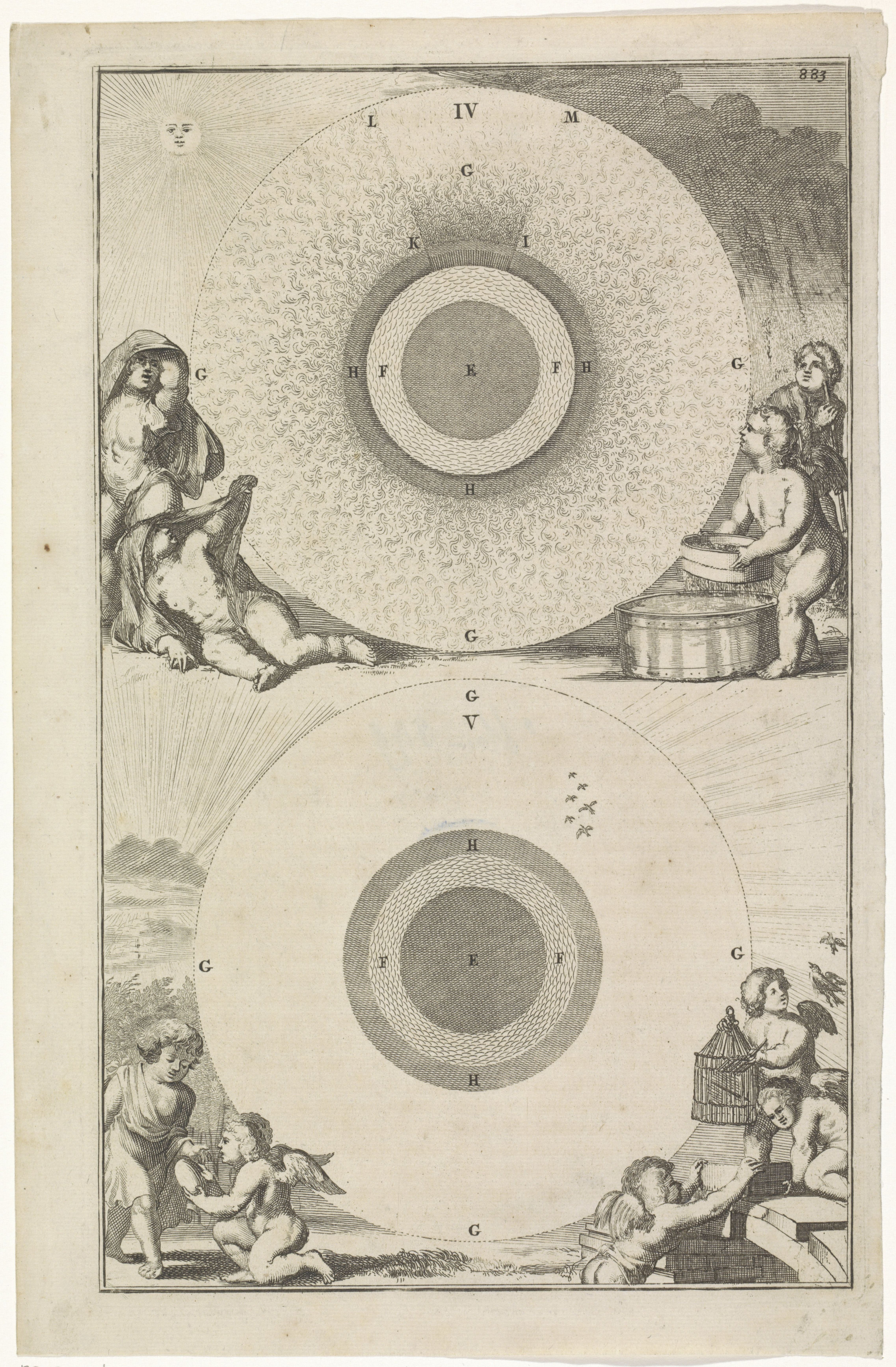 Two views of creation from Willem Goeree, Voor-Bereidselen tot de Bybelse Wysheid (Amsterdam, 1690). Universiteitsbibliotheek Vrije Universiteit Amsterdam, XI.05177.-.