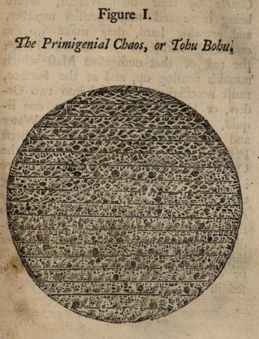 Two sections from Francis Walsh’s The Antediluvian World; or, a New Theory of the Earth (Dublin, 1743). Google Books.